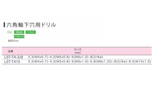 六角軸タップ下穴用ドリル