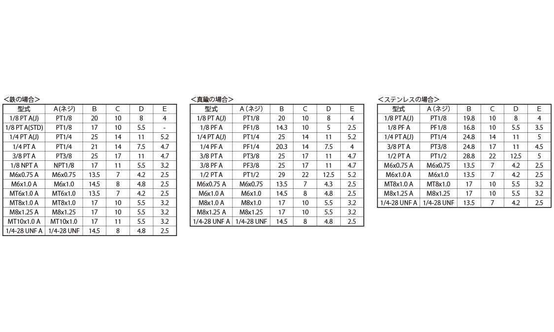 鉄 | 三価ホワイト(銀) | 1/8NPT | あり | なし | 100 | 115円 105円 | ||