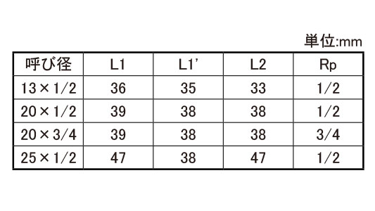 サイズ 径+長さ(ℓ) |