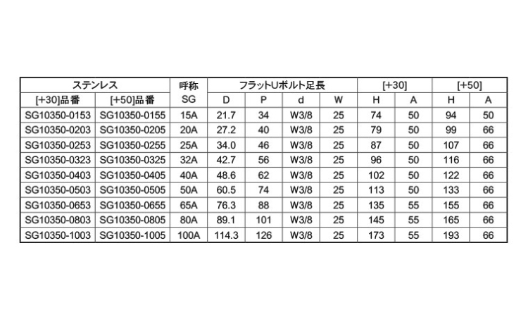 ステンレス | 生地 | フラットUボルト(+50(SG10350-0205 | 要確認 | なし | 1 | 3,175円 2,887円 | ||