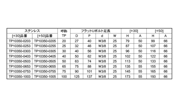 ステンレス | 生地 | フラットUボルト(+50(TP10350-0305 | 要確認 | なし | 1 | 3,371円 3,065円 | ||