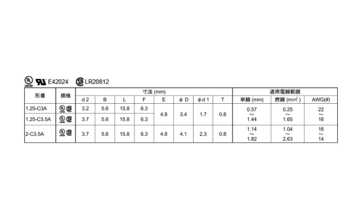 銅 | スズ(白銀) | 1.25-C3.5A | 要確認 | なし | 100 | 8.38円 7.62円 | ||