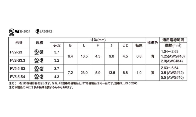 銅 | スズ(白銀) | FV5.5-S3 | 要確認 | なし | 500 | 24.25円 22.05円 | ||