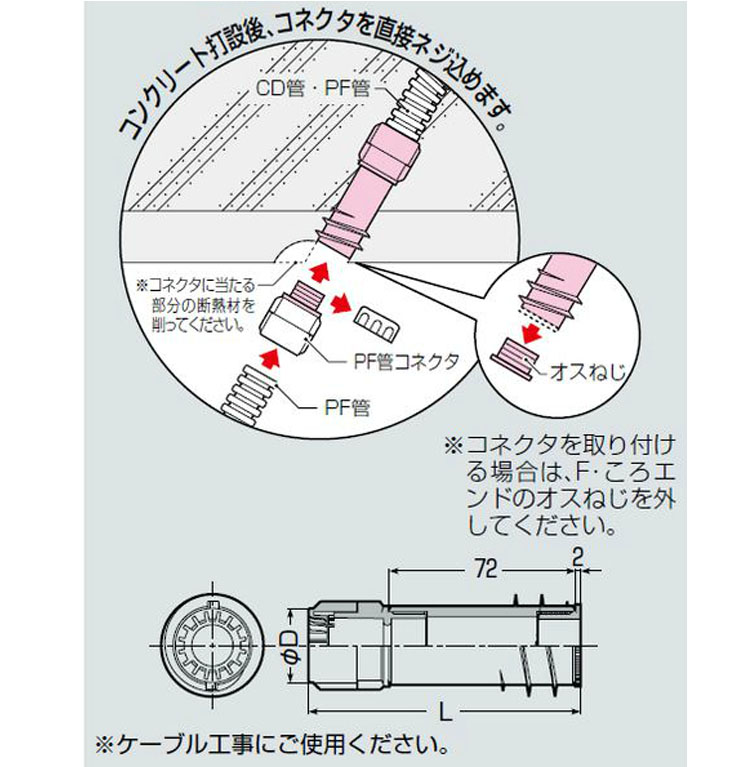 ●コンクリート打設後のPF管接続が容易に行えます。