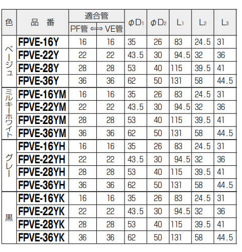 樹脂 | ベージュ(樹脂) | FPVE-22Y | 要確認 | なし | 10 | 547円 498円 | ||
