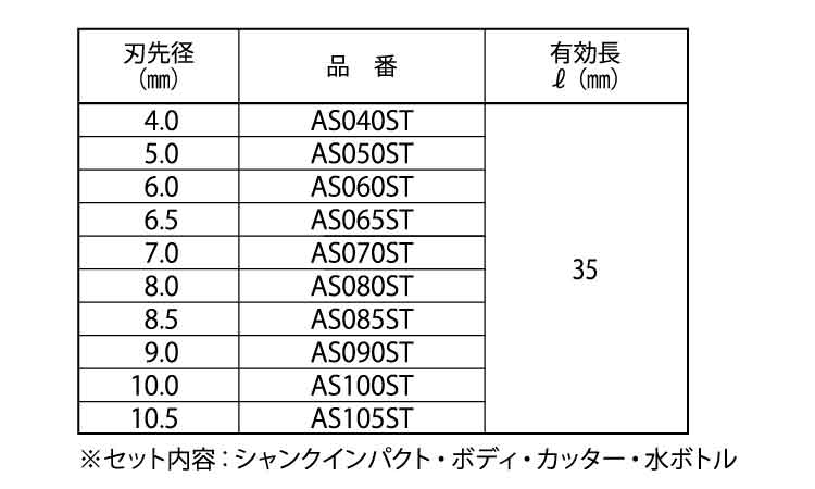 品名:湿式 タイル用ダイヤドリル アクアショットAS セット
