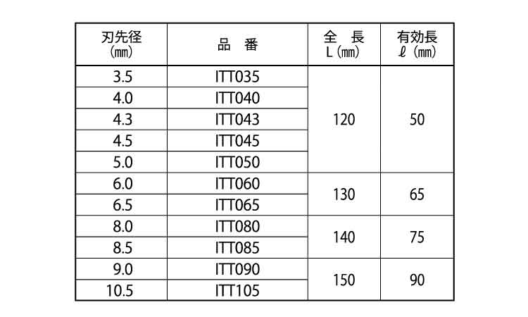 ・IT超硬ドリル、ITダイヤボディを使用サイズにより