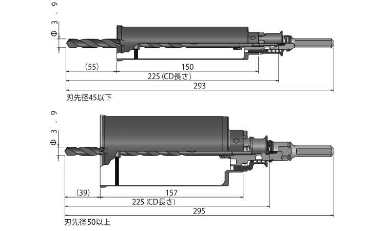 ・ガイドバーの使用でセンター穴が大きくならず、ガルバリウム鋼板を使用した金属系サイディングの穴あけもきれいに安全に行えます。