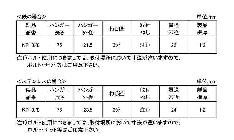 ステンレス | 生地 | KP-SU3/8 | あり | なし | 10 | 1,740円 1,582円 |