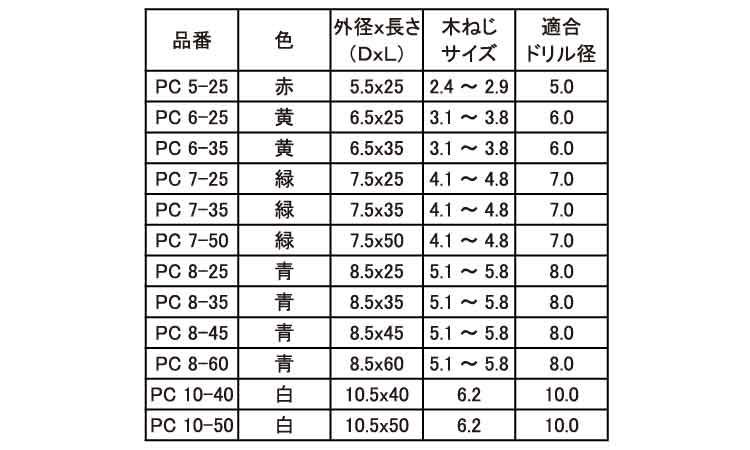 ●カールPCプラグはコンクリート、ブロック、大理石、タイルなどへあらゆる器具の