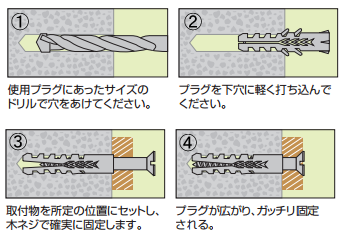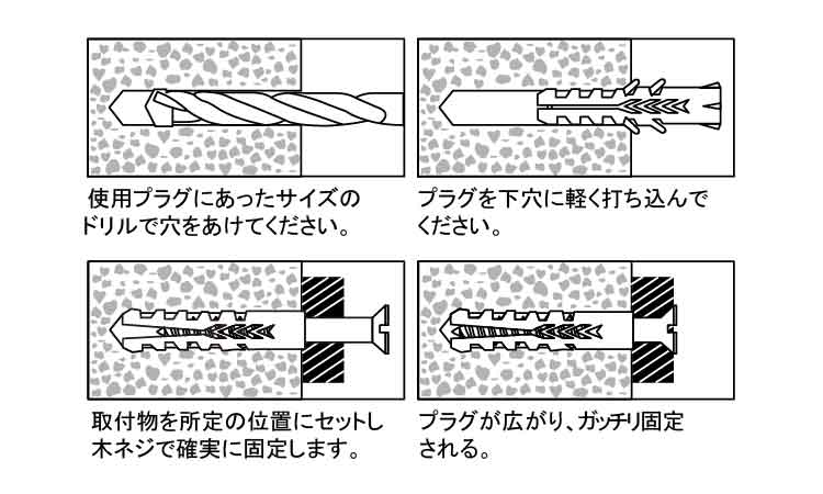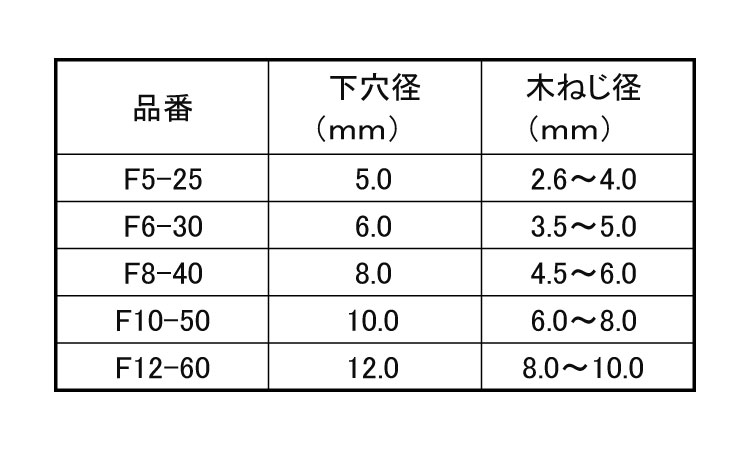 ※下穴径は比較的柔らかい壁面材の場合、1mm小さくしてください※下穴径は比較的柔らかい壁面材の場合、1mm小さくしてください。