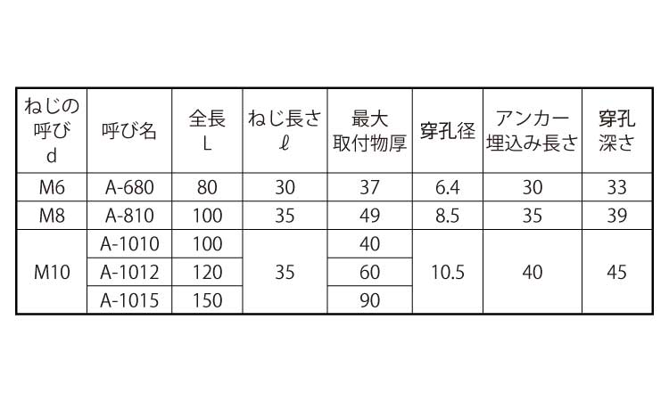 ![]() | ●アンカーサイズに適応するドリルを選択 ●穿孔する深さを確認 ●コンクリートドリルにマーキング | ●ドリル径および、穿孔深さはアンカーメーカーの指定による ●深さは穿孔機器の調整あるいはドリルにテープ又はマジックインキ等で確実にマークをつけること |
