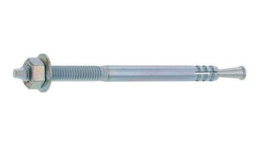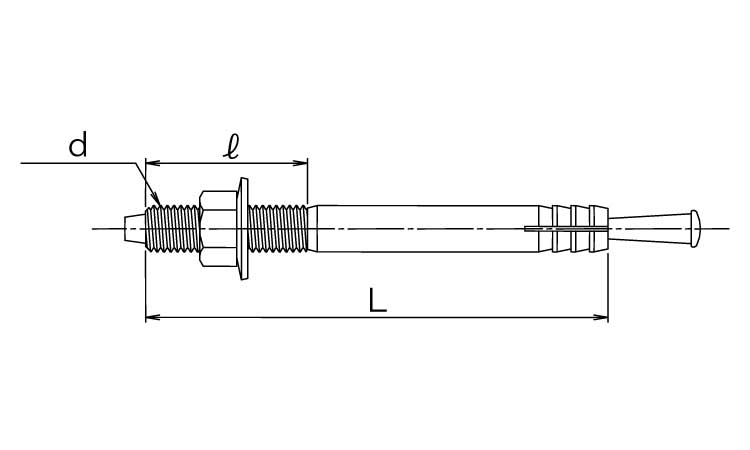 ![]() | ●孔内のアンカーにハンマーを用いて軽く叩き挿入 | ●アンカーを孔に挿入する前にコーンが脱落しないよう、あるいは斜めにセットされてないかを確認すること ●アンカーを挿入する際は、専用打込み棒を直接用いて行わないようにすること |