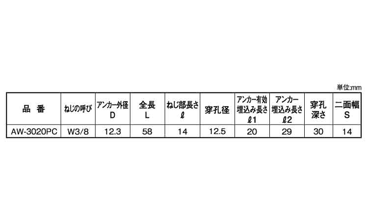 鉄 | 三価ホワイト(銀) | AW-3020PC | あり | なし | 50 | 309円 281円 |