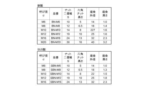 ステンレス | 生地 | SBN-M6 | あり | なし | 50 | 21.38円 19.44円 | ||