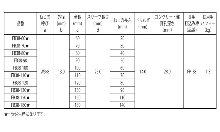 商品です。アンカー長さを選択することにより厚さ60~150mmまでの