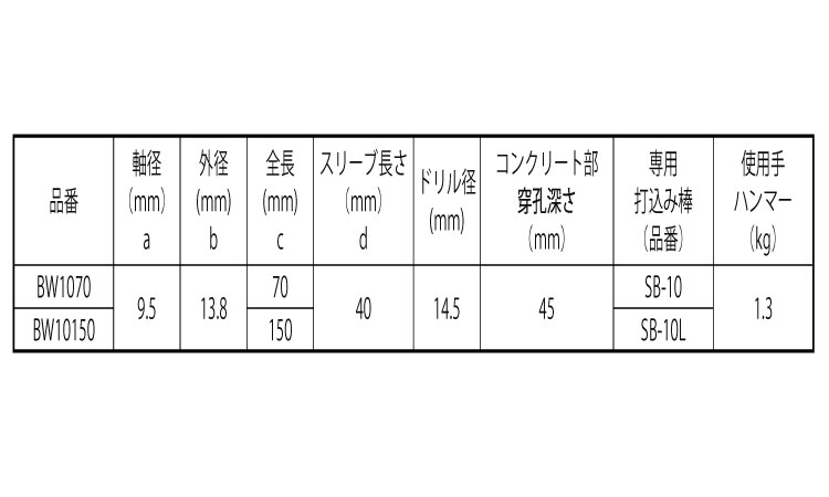 ![]() | ●メーカー指定の専用打込み棒を使用し打込みの手ごたえ又は音が 変わるまで打込む。 | ●ハンマーの重さはアンカーのサイズに応じ適切なものを用いること。 ●メーカーの仕様がある場合はそれに従うこと。 |