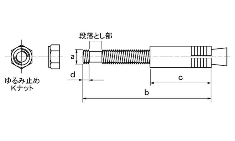 ・万一のナットゆるみが発生してもボルト本体の段落とし部にナットが止まります。