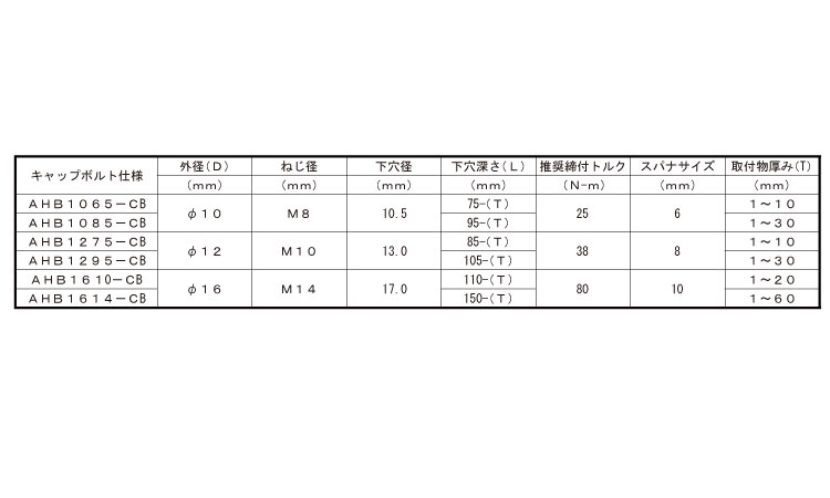 ヒジカタボルトキャップボルト仕様AHB1610-CB バラ売り不可