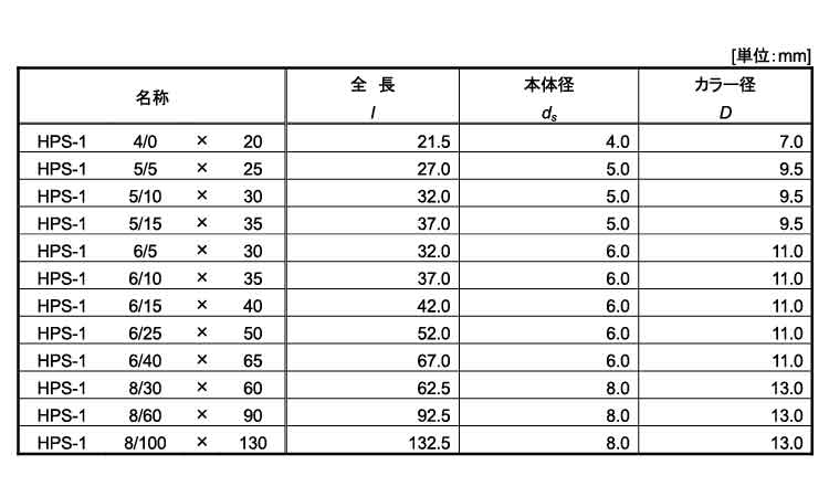 サイズ 径+長さ(ℓ) |