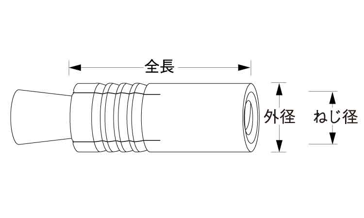 ![]() | ●孔内のアンカーにハンマーを用いて軽く叩き挿入 | ●アンカーを孔に挿入する前にコーンが脱落しないよう、あるいは斜めにセットされてないかを確認すること ●アンカーを挿入する際は、専用打込み棒を直接用いて行わないようにすること |