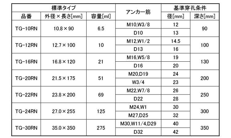 ボルトメイトTGは、スチレンフリーエポキシアクリレート樹脂および骨材と、硬化剤を別々のガラス管に収容したダブル溶閉タイプのケミカルカプセル接着系,あと施工アンカーです。