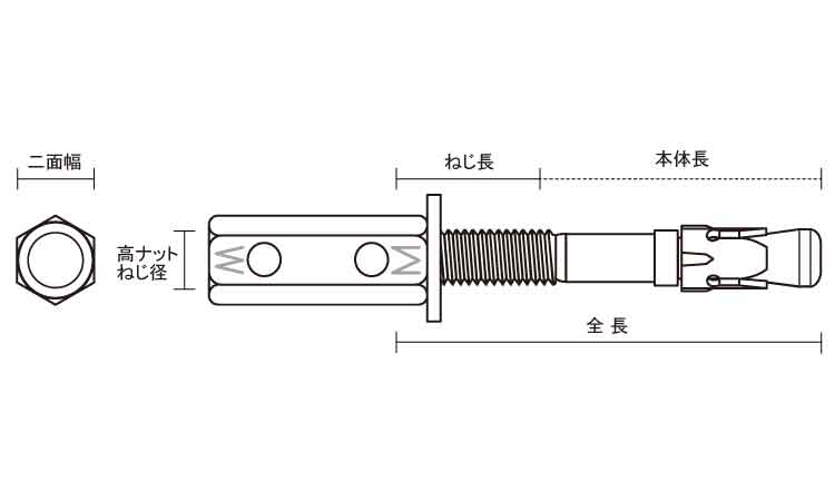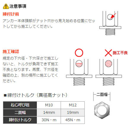・穴付き異径高ナットで、確実な施工を目視確認可能。