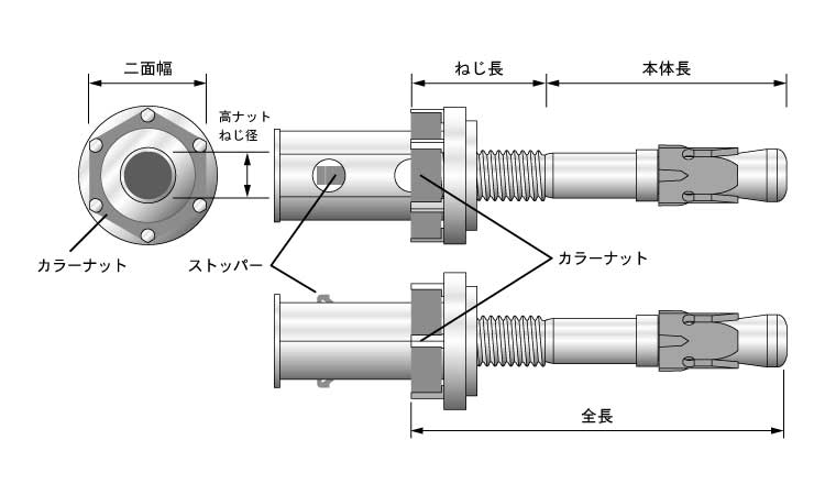 カラーナットの位置で、ボルトがねじ込み安全深さに達しているかを目視確認することが可能です。