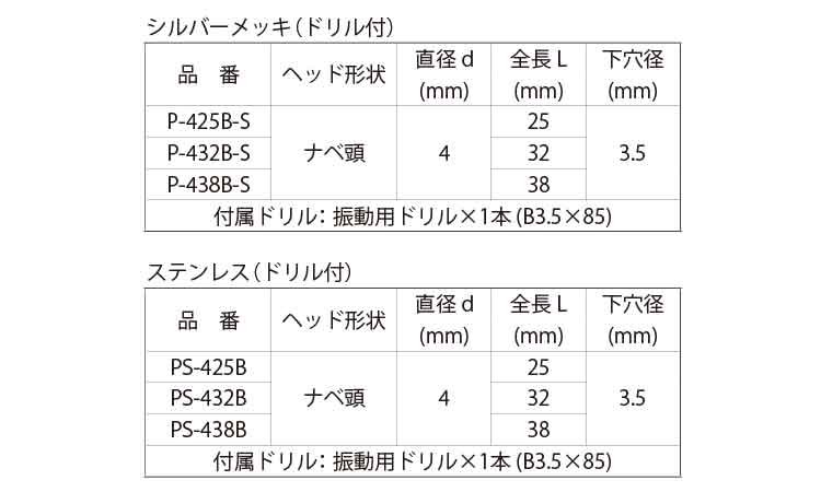 鉄 | ラスパートシルバー | P-425B-S(200入) | あり | あり | 1 | 1,748円 1,589円 | ||