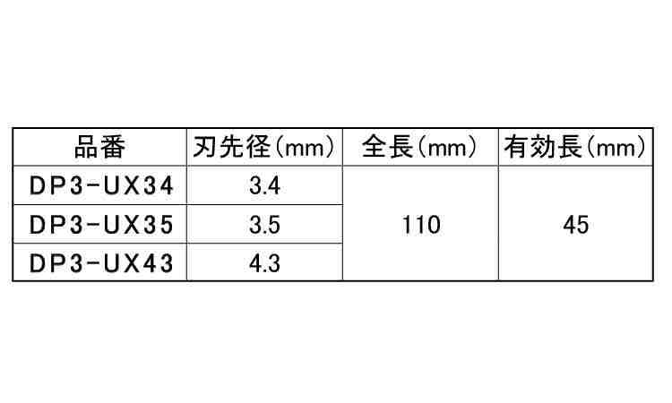 ■ソリッドクロス刃(刃先径:3.4~5.5mm)