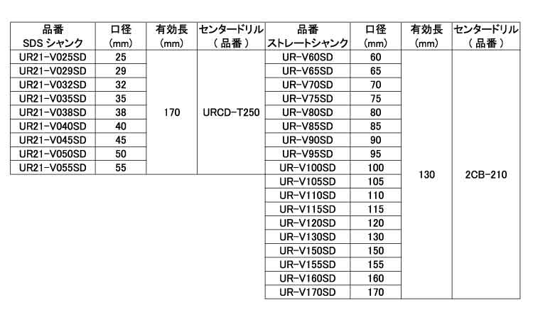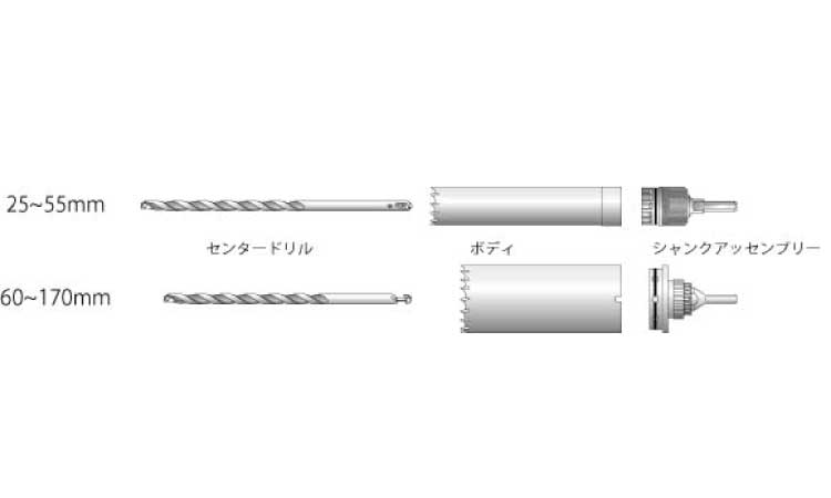 ■硬質壁材等に最適な刃型形状で、精度と能率を両立させた振動用のコアドリル。細径から大口径までのベーシックモデル。