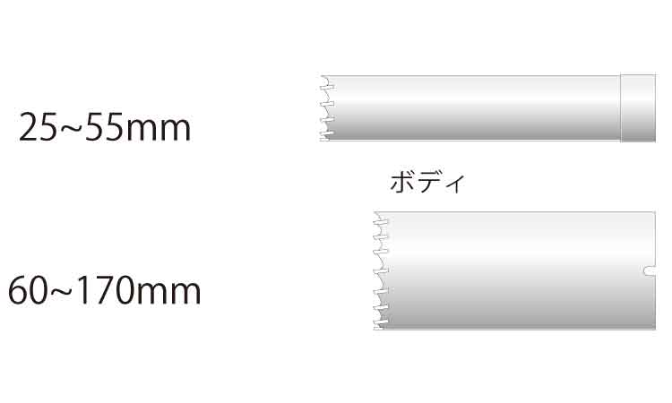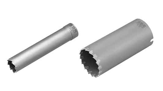 ■硬質壁材等に最適な刃型形状で、精度と能率を両立させた振動用のコアドリル。細径から大口径までのベーシックモデル。