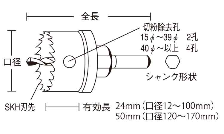 刃先にコバルトハイスを溶接したバイメタル構造のホールソーです。