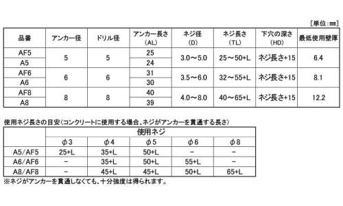 1.コンクリートの様な硬質の壁にはアンカーと同径のネジを、石膏ボードや ALC の様な軟質の壁には 1 サイズ小さい下穴とネジを使うと最大の保持力が得られます。