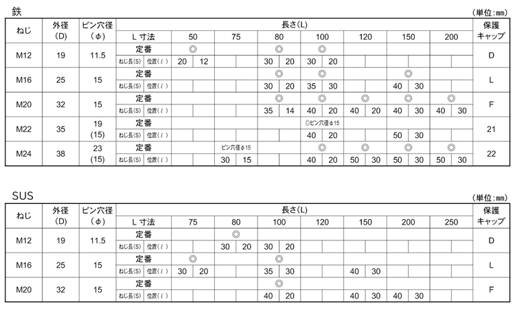 ステンレス | 生地 | M12X100 | 要確認 | なし | 1 | 1,470円 1,337円 | ||