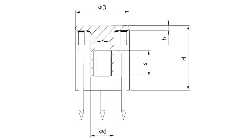 2.金具頭部をハンマーで垂直に打込み固定します。