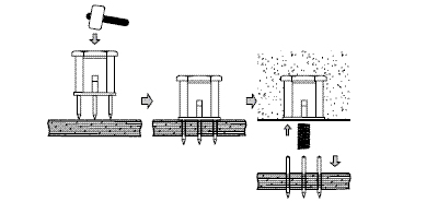 2.インサートヘッドをハンマーで垂直に叩込みます。