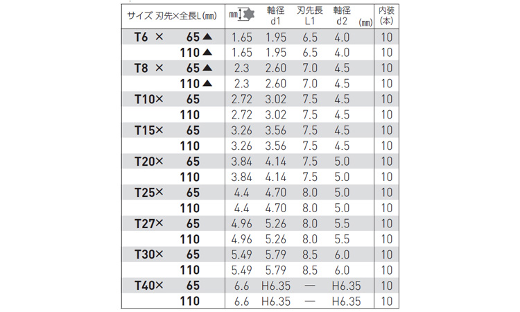 サイズ 径+長さ(ℓ) |