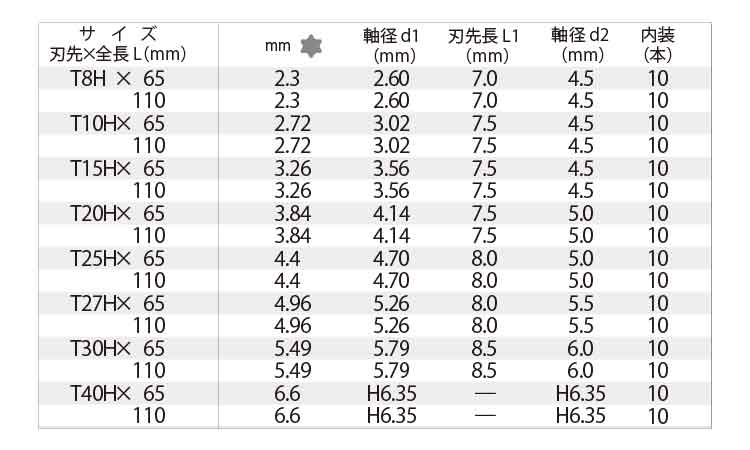 TORXビット タンパー用 V