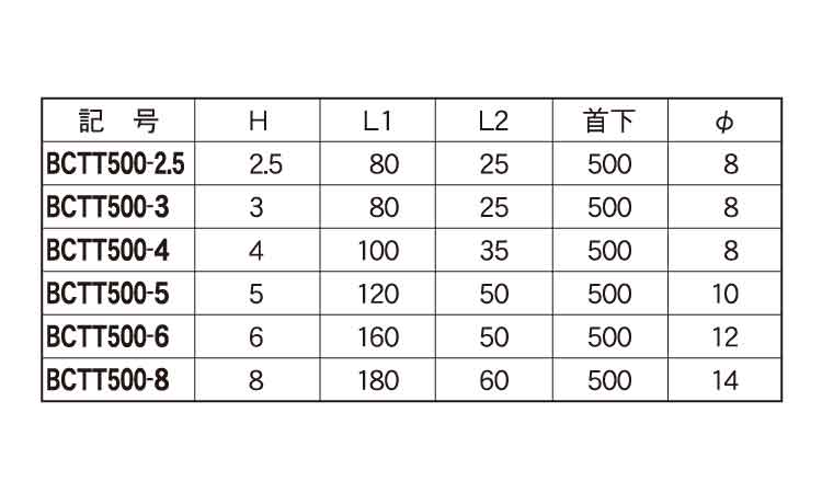 BTテーパーT型BCTT500