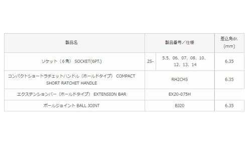 ●狭い場所での使用に便利な差込角6.35mmのソケットレンチセットです。