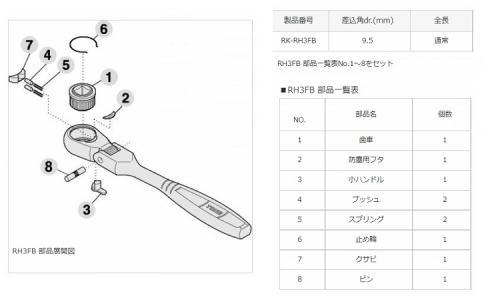 首振ラチェットハンドルRH3FB