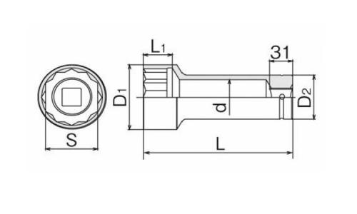●通常ソケットでは届かない深い場所や、ねじ部が長く突き出たボルトの締結作業に最適です。