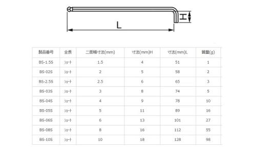 首下SBPL形レンチ(BSーS