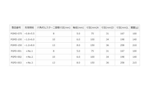 プラスドライバーの先端は底あたりを防止し、ピッタリフィットするオリジナル形状。(PGPD-002、003)