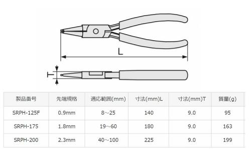スナップリングプライヤ(ST穴用SRPH-175 バラ売り不可
