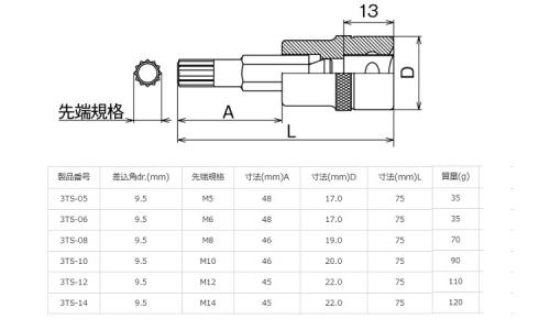 三重四角ビットソケット(3TS