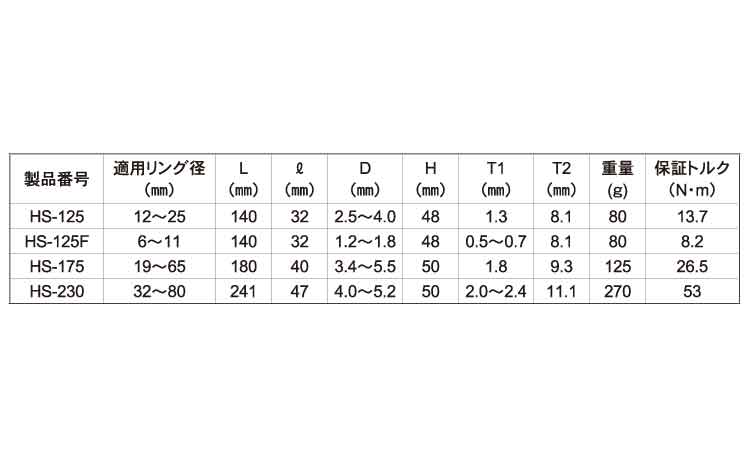 サイズ 径+長さ(ℓ) |