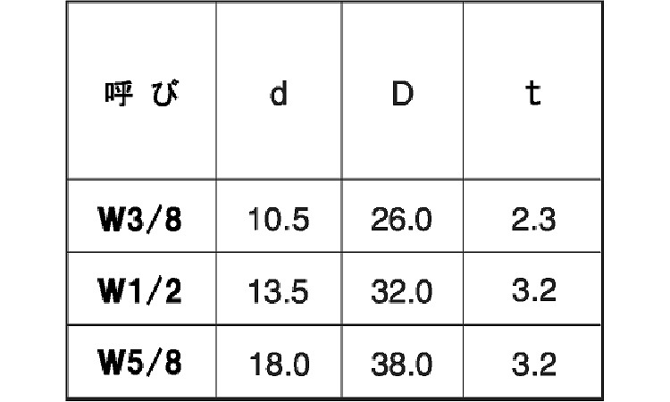 材質 | 表面処理 | 内径 | 外径 | 厚み | バラ売り |