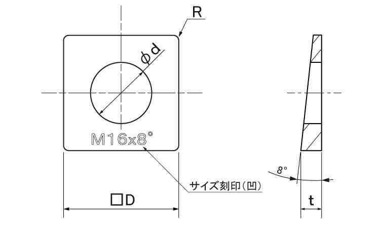 テーパーワッシャー(8度(ナミテイ製